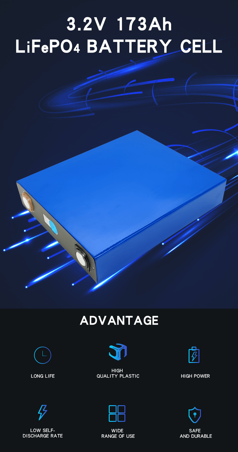 این سلول باتری 3.2V 173Ah LiFePO4 دارای گواهی UL دارای مزایای زیر است: