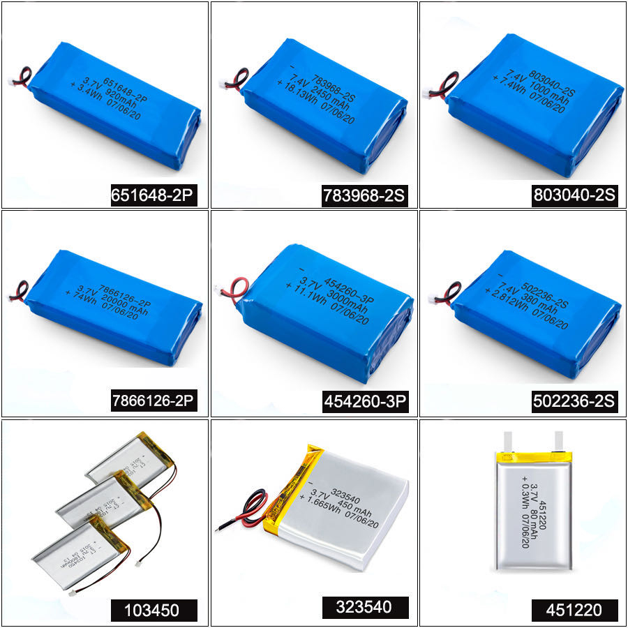 این بخشی از محصولات ما است. علاوه بر این ، ما می توانیم اندازه و ظرفیت باتری های پلیمری را سفارشی کنیم. برای اطلاعات بیشتر با ما تماس بگیرید خوش آمدید