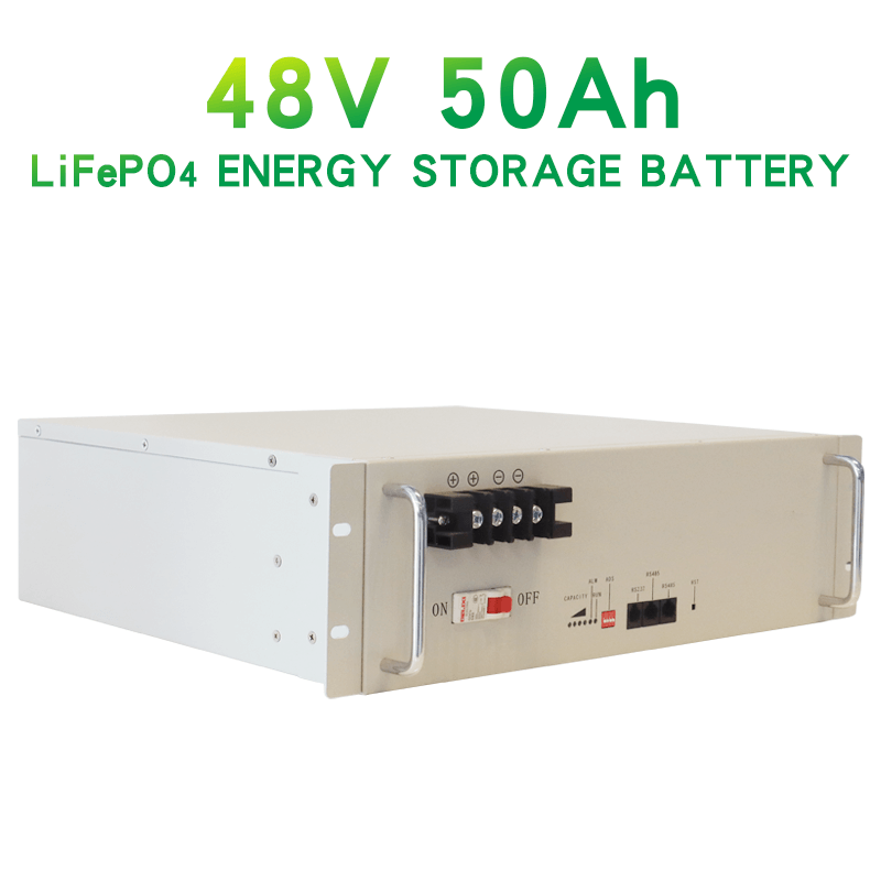 این سیستم باتری 48 ولتی 50 آمپر ساعتی LFP دارای BMS داخلی و جعبه فولادی ضد زنگ است که به رنگ سیاه یا سفید رنگ شده است.