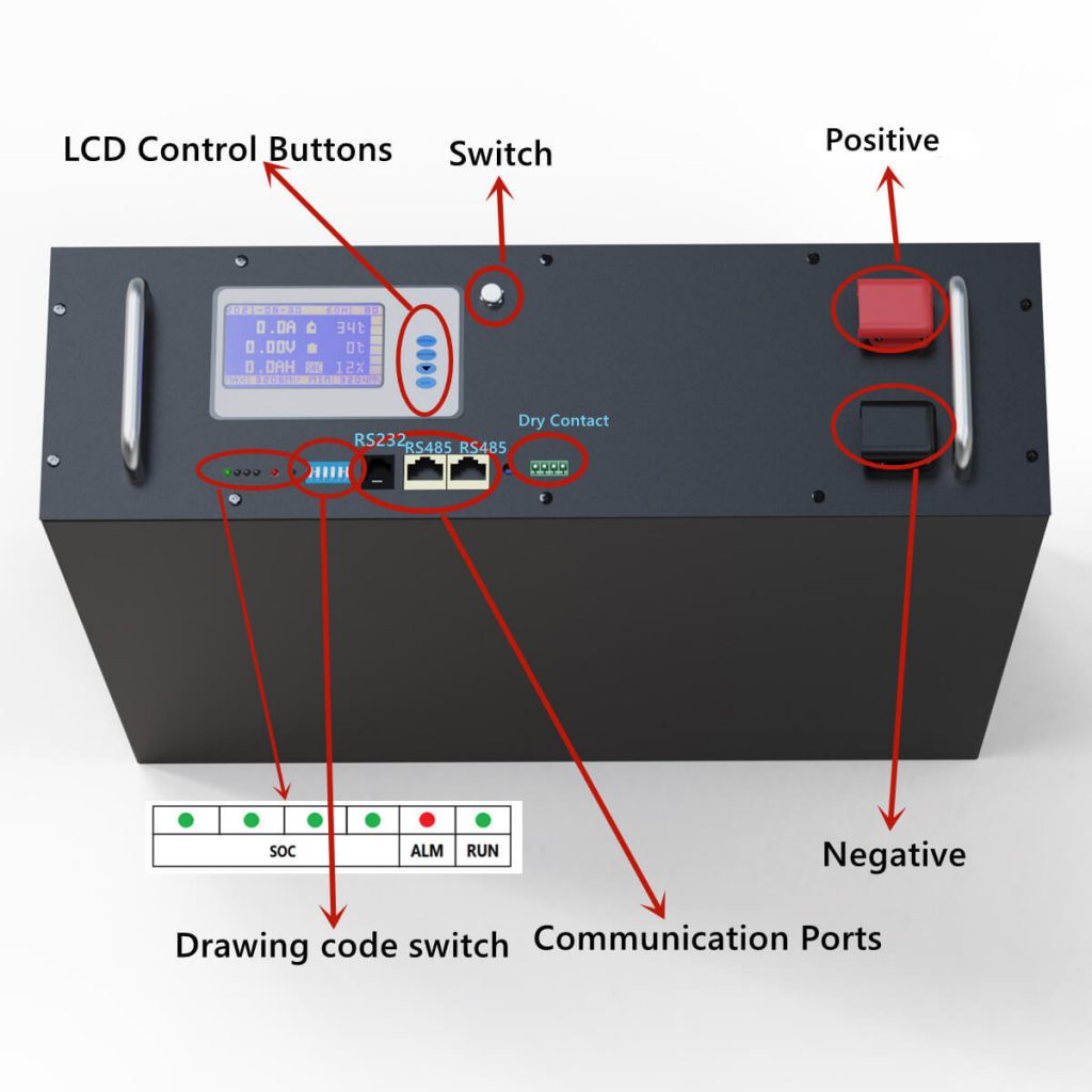 اندازه باتری | بسته باتری 48 ولت 100 آمپری Lifepo4 |