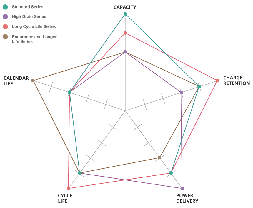 - 30 - 40٪ ظرفیت بالاتر از Ni-Cd استاندارد.