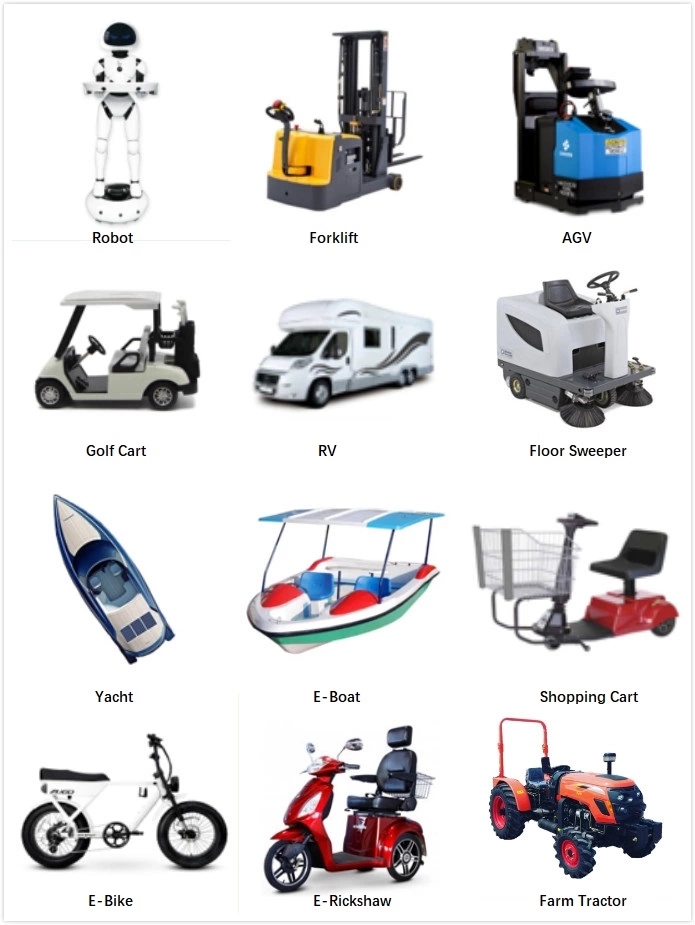 | برنامه های کاربردی | چرخ دستیهای گلف، لیفتراکهای برقی، ماشینهای سرعت آهسته؛ AGV، موتور سیکلت الکتریکی؛ ماشین گشت و گذار؛ RV، سه چرخه، وسایل نقلیه الکتریکی، برقی صندلی چرخدار، سیستم های برق، منابع تغذیه بدون وقفه، سیستم های ذخیره انرژی خورشیدی، قایق |