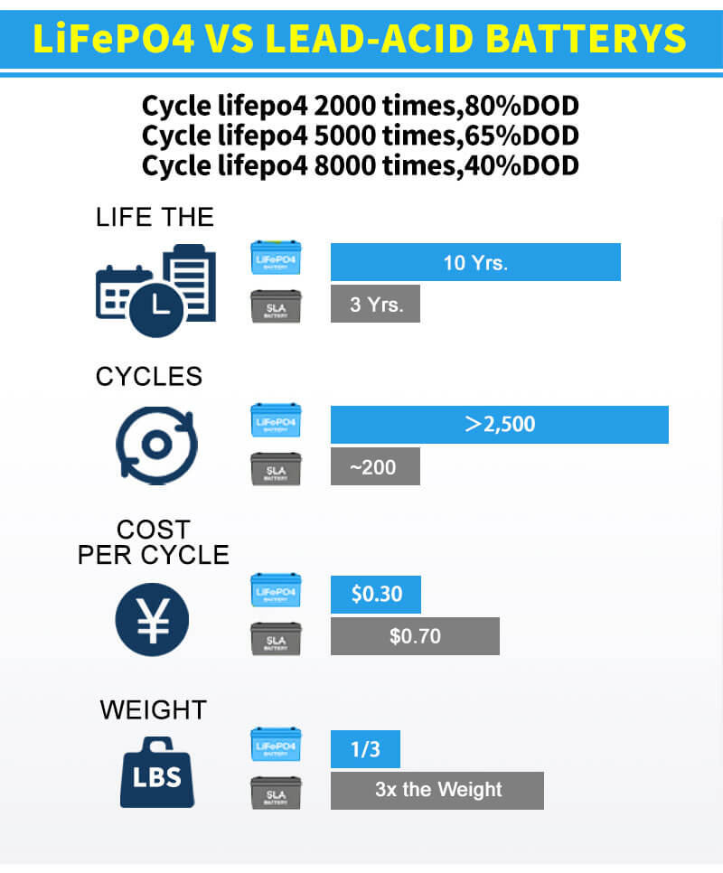 ◆ استفاده از فناوری سلول فسفات آهن لیتیوم ، ایمنی برتر ، هزاران چرخه ، 100٪ DOD ، در شرایط عادی.